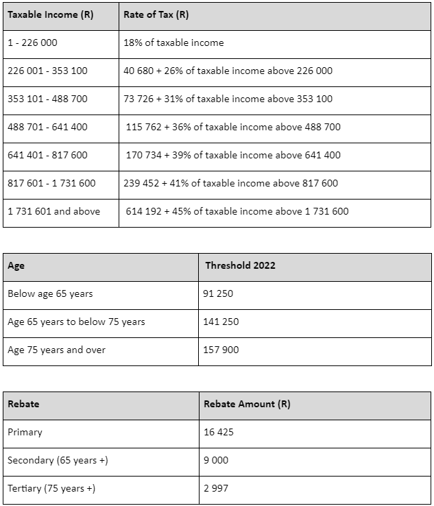 Tax Rates from 1 March 2022 - 28 February 2023